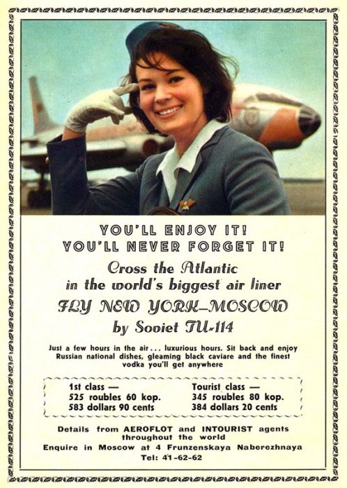 Цена билета в рекламном плакате рассчитана явно не на карман советского туриста. Внутренние рейсы были куда дешевле и частично оплачивались профсоюзами.
