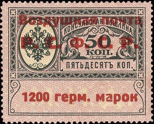 «Консульский полтинник» — это марка консульской пошлины номиналом в 50 копеек с надпечаткой «Воздушная почта Р.С.Ф.С.Р. 1200 герм. марок». Это одна из самых редких почтовых марок РСФСР, её ориентировочный тираж 50—75 экземпляров. Одна такая марка была продана в 2008 году на аукционе Cherrystone за $63 250.