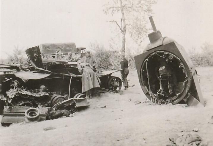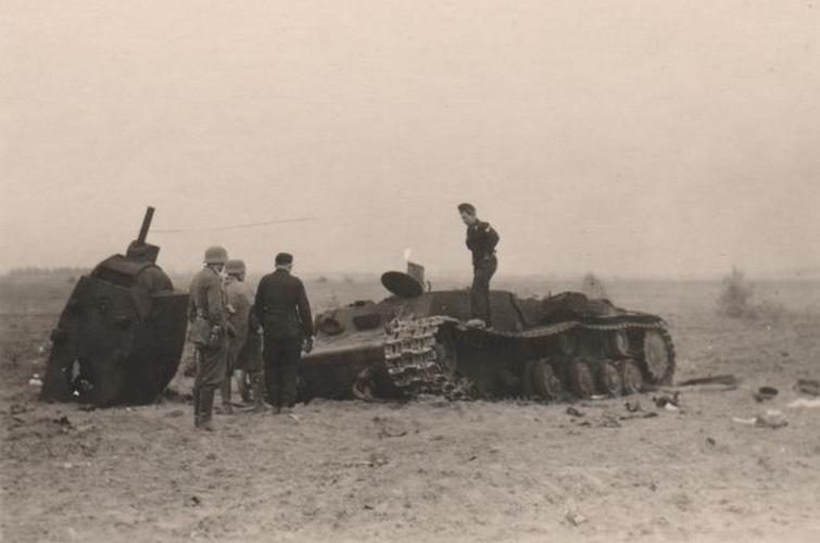 Офицеры и солдаты радостно закричали, словно зрители на веселом спектакле. „Попали! Браво! С танком покончено!“ Танк никак не реагировал, пока наши пушки не добились 8 попаданий. Затем его башня развернулась, аккуратно нащупала цель и начала методично уничтожать наши орудия одиночными выстрелами 80-мм орудия. Две наших 50-мм пушки были разнесены на куски, остальные две были серьезно повреждены. Личный состав потерял несколько человек убитыми и ранеными. Лейтенант Венгенрот отвел уцелевших назад, чтобы избежать напрасных потерь. Только после наступления ночи он сумел вытащить пушки. Русский танк по-прежнему наглухо блокировал дорогу, поэтому мы оказались буквально парализованными. Глубоко потрясенный лейтенант Венгенрот вместе со своими солдатами вернулся на плацдарм. Недавно полученное оружие, которому он безоговорочно доверял, оказалось совершенно беспомощным против чудовищного танка. Чувство глубокого разочарования охватило всю нашу боевую группу.