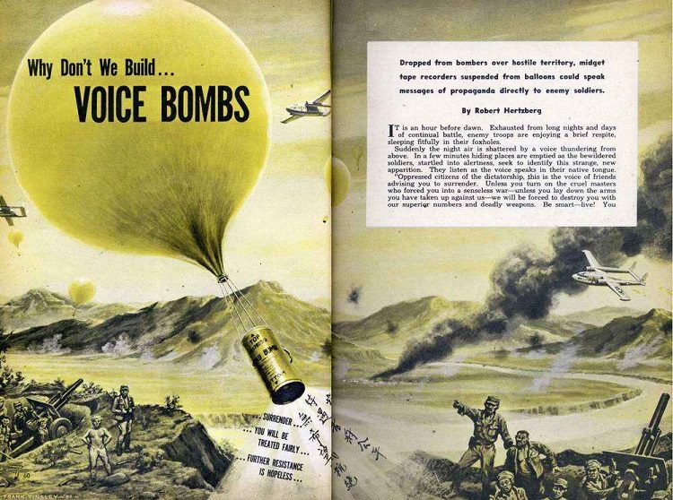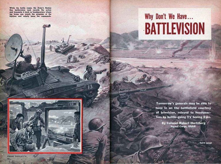 Ниже — картинки, как американские футуристы в 1950-е годы представляли себе будущую лёгкую военную технику. Вероятно, такие агрегаты, использовались бы и при оккупации побеждённого СССР: