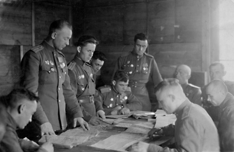 Подготовка операции по бомбардировке Кенигсберга в 135-м гвардейском бомбардировочном авиаполку.