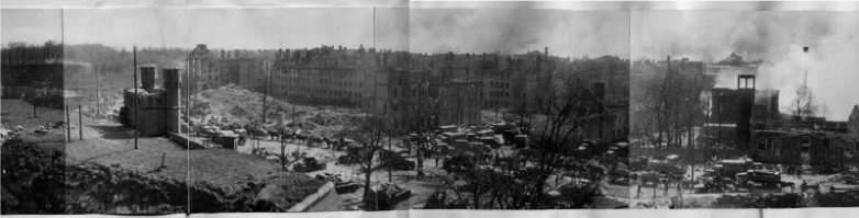 Кенигсберг, панорама с башни Дона. Росгартенские ворота и пересечение улиц Литауер Валльштрассе, Врангельштрассе, Хинтерроссгартен и Кранцер аллея.