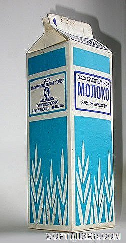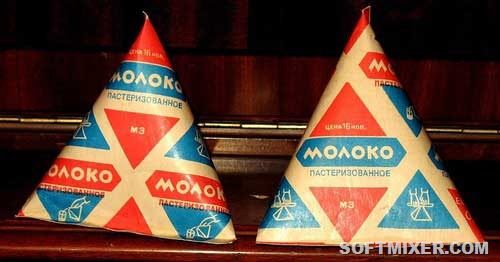 Кроме бутылок — молоко продавали в треугольных пакетах емкостью пол-литра. Их особенность было то, что их выносили в торговый зал в больших алюминиевых поддонах или пластмассовых ящиках, и когда в поддоне оставалось мало пакетов — было видно, что поддон весь в молоке. Дело в том, что эти пакеты имели упрямое свойство протекать по углам. Зато их было удобно ставить, и удобно пить прямо из пакетов, отрезав уголок