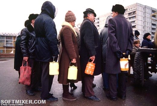 А еще молоко в то время продавали из бочек. Молочные бочки кроме цвета и надписи ничем не отличались от бочек с квасом или пивом. И очередь к ним стояла меньше, чем за пивом))
