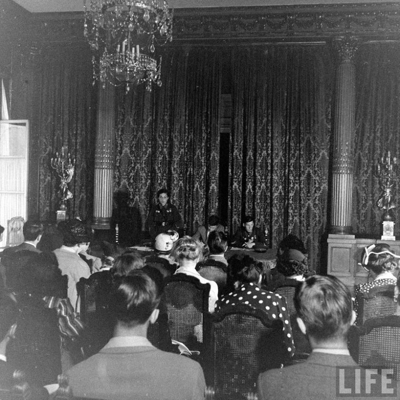 Для тех кто писал комментарии ранее. Придурки!!! Читайте историю ВОВ… Это та девушка- снайпер, которая приехав в США, пристыдила мужчин американцев в их бездействии… Она в Сталинграде уничтожала фашистов!