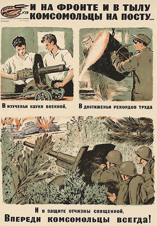 В первые дни Великой Отечественной войны был плакат — «Родина-мать зовет!» Имел сильное воздействие, организующие массы на борьбу с захватчиками, поднимал дух народа. За время войны были созданы тысячи плакатов. Например, еще плакат — «Ты записался добровольцем». Этому плакату присуща идейная целеустремленность. В обоих этих плакатах высокий пафос патриотического призыва.