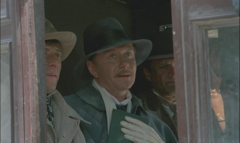Побывав на первых кинопоказах, организованных в Париже братьями Люмьер, он загорается идеей организовать кинотеатр в захолустье, жители которого только и делают, что напиваются в стельку в салуне. Заручившись поддержкой местных — певицы Дианы Литтл (Яковлева), хозяина бара Гарри МакКью (Табаков) и ковбоя Билли Кинга (Караченцов), герой Миронова демонстрирует посетителям первое в мире кино. Люмьеровское «Прибытие поезда» производит на завсегдатаев салуна такое сильное впечатление, что они забывают о пагубных привычках и не пропускают ни одного сеанса. Воцарившаяся идиллия длится недолго, а сила искусства имеет и обратную сторону — прибывший в Санта-Каролину мистер Сэконд (англ. «второй», Альберт Филозов) показывает местным киноманам низкопробные фильмы, чем снова ввергает городок в пучину порока и разврата.