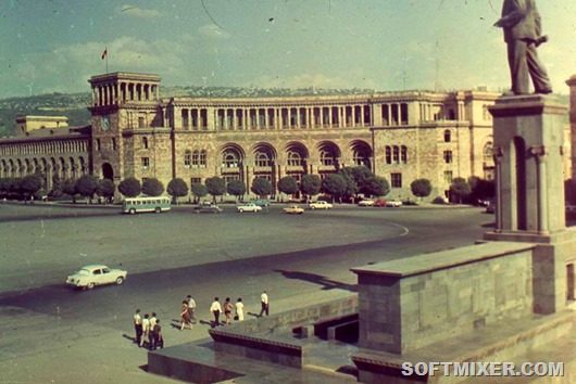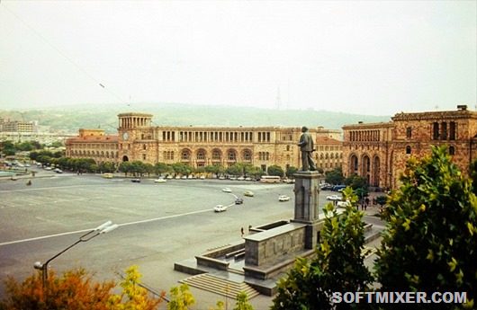 Центральное здание почты РА, гостиница «Marriott Armenia», здание Министерства иностранных дел и энергетики. Перед зданием Музея истории Армении стоят легендарные «поющие» фонтаны, одновременное меняющие свой цвет.” Но это уже в наши дни.