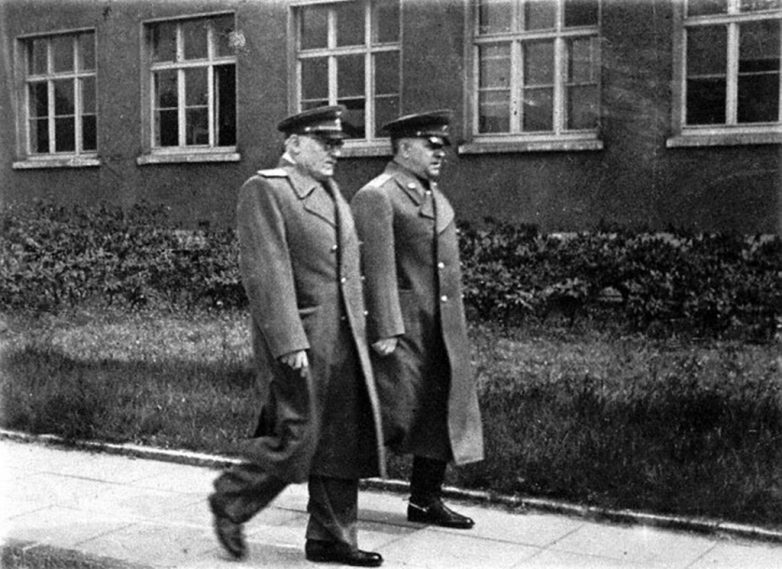 34. Первый заместитель народного комиссара иностранных дел СССР Вышинский А.Я. и Маршал Советского Союза Жуков Г.К. направляются на церемонию подписания Акта о безоговорочной капитуляции Германии. Карлсхорст. 08.05.1945 г.