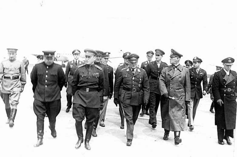 33. Прибытие в Берлин генерал-фельдмаршала В.Кейтеля, адмирала флота Х.Фридебурга и и генерал-полковника авиации Г. Штумпфа для подписания Акта о безоговорочной капитуляции Германии. В числе сопровождающих — генерал армии Соколовский В.Д. и генерал-полковник Берзарин Н.Э. 08.05.1945 г.