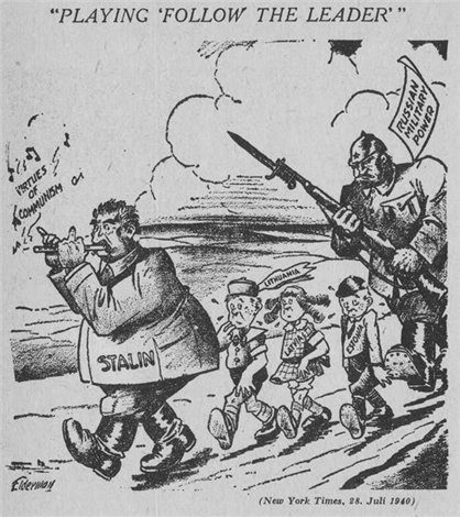 Карикатура, посвящённая присоединению Латвии и Литвы к СССР