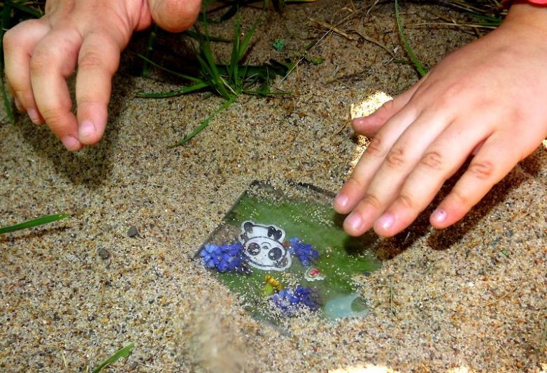 Девачковая игра, смысл которой заключался в закапывании в разных укромных уголках двора цветных бутылочных стёклышек, с конфетной фольгой в виде подложки. Смысл игры для мальчиков заключался в нахождении и уничтожении этих закладок.