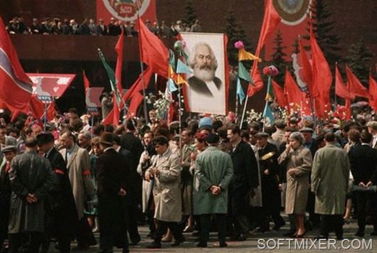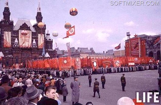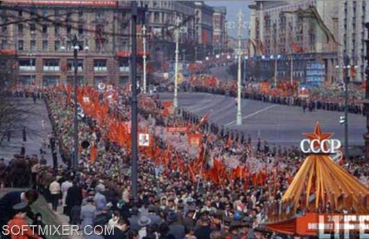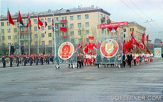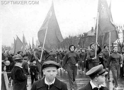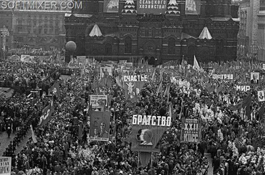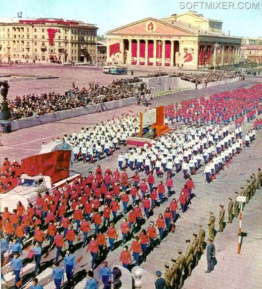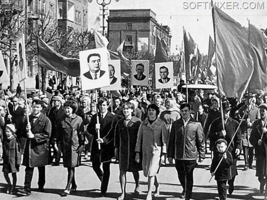 Небывалое единение охватывало трудящихся СССР два раза в год — 1 Мая и 7 Ноября. Перекрывалось движение и празднично одетые люди с плакатами и флагами двигались к Центральной площади, где их приветствовали с трибун руководители партии.