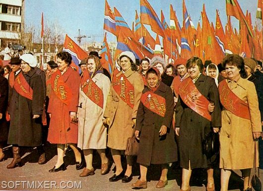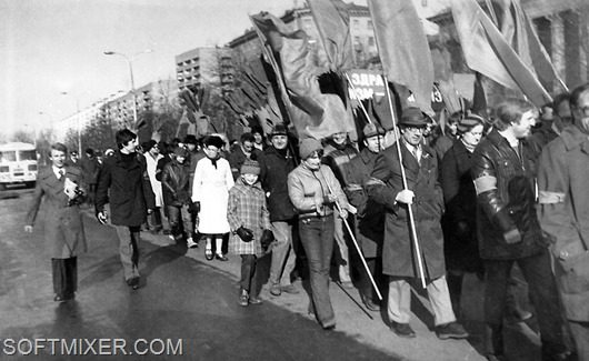 Были планы, были достижения. Был праздник всенародный, и радость в глазах. Народ радовался празднику, ходил на демонстрации. Много цветов, флагов, портретов, надувных шаров.