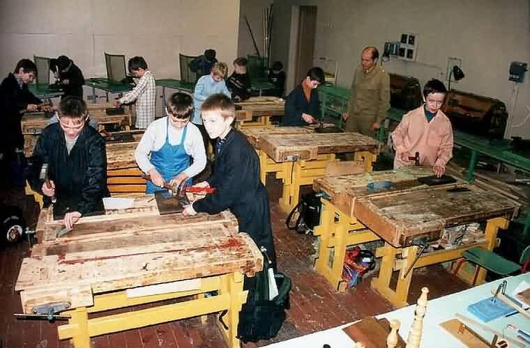 Уроки труда — это, пожалуй, были самые любимые уроки многих советских школьников. Это была настоящая мастерская. Ни одного бездельника. Мальчишки трудились как на заводе, причем с явным желанием и старанием.