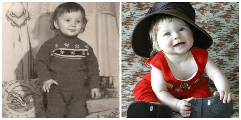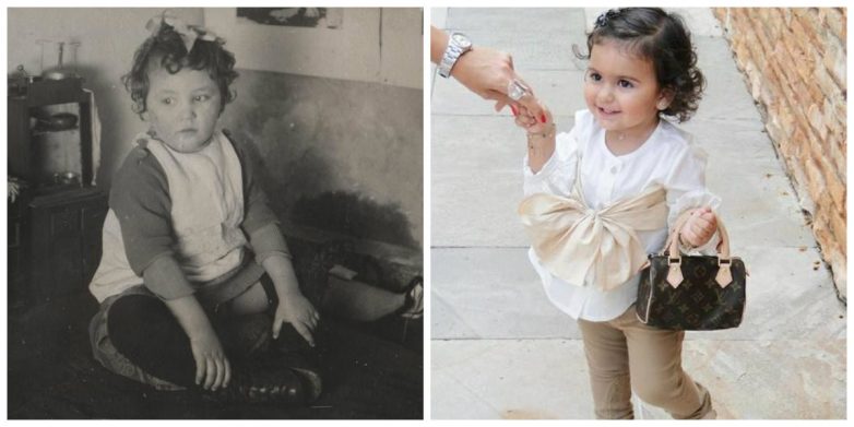 по моему не сопоставимо, старые фото из семейных архивов, справа почти все фото постановочные, одежда, свет, ракурс.Не факт что просто дома и на прогулке дети такие…