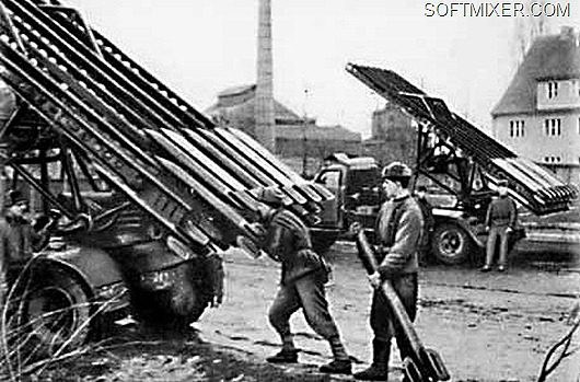 Немцы первыми применили реактивные системы залпового огня во Второй мировой войне. 22 июня 1941 года против Брестской крепости было использовано 9 батарей 4-го полка минометов специального назначения. Это были шестиствольные 150-миллиметровые минометы «Небельверфер» (в честь создателя Рудольфа Небеля), много раз описанные в мемуарах советских ветеранов.