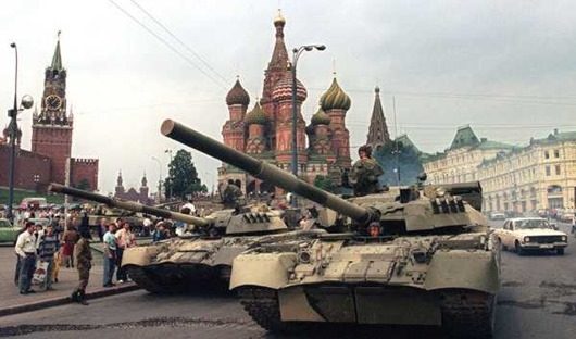 Все три дня, 19-21 августа, пока продолжался организованный ГКЧП путч, сторонники Бориса Ельцина проводили массовые манифестации в Москве. Акция 20 августа на площади у Белого дома.