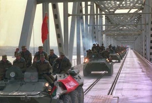 Вывод советских войск из Афганистана. Колонна парашютно-десантной части пересекает границу.