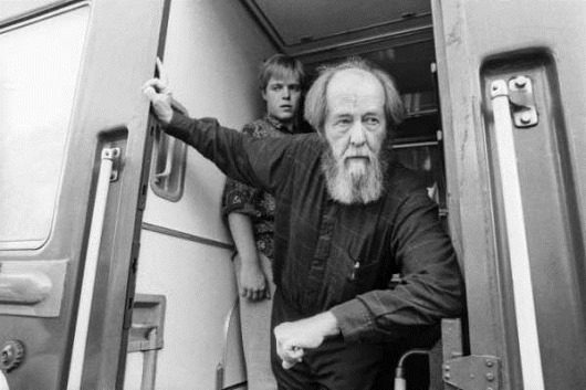 Лауреат Нобелевской премии Александр Солженицын с сыном Ермолаем во время путешествия из Владивостока в Москву.