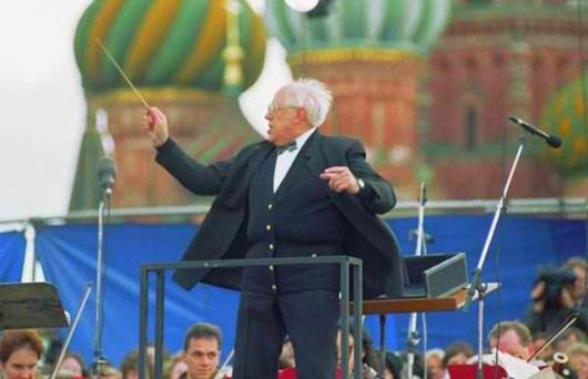 Открытый концерт, посвященный 100-летию памяти Петра Ильича Чайковского. За дирижерским пультом Мстислав Ростропович.