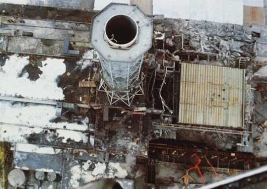 Чернобыльская АЭС. Сооружение саркофага над четвертым энергоблоком.