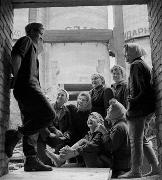 Красноярский край. Молодые строители на ударной комсомольской стройке.