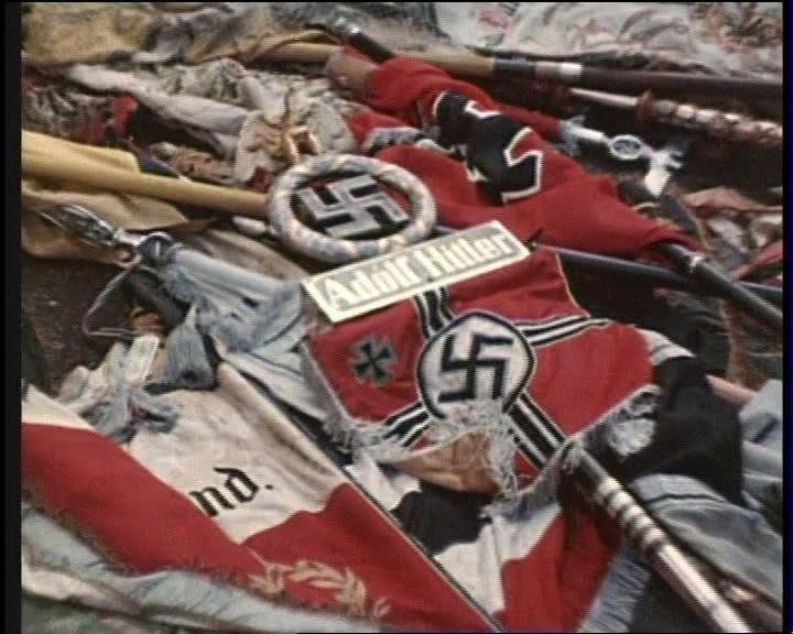 Затем фашистские знамена церемониально сожгли.