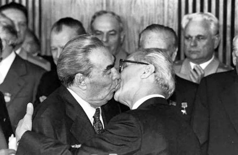 10. Самый известный поцелуй Леонида Ильича — с Эриком Хоннекером, руководителем ГДР, в 1971 году. Этот акт дружбы народов был даже изображен на Берлинской стене молодым, но очень талантливым художником Дмитрием Врубелем. «Братский поцелуй» стал символом падения Берлинской стены.