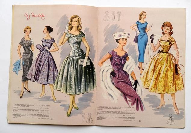 В конце 50-х — начале 60-х годов советские коллекции стали показывать за рубежом, где принимались с восторгом. В 1959 году в Москве состоялся первый показ модного дома «Кристиан Диор». Тогда же появились первые «стиляги» (по-нашему сегодня — «хипстеры»). Крошечными порциями «подавалась» в страну Советов модная одежда из Америки. Но обычным жителям, конечно, это было недоступно. Изысканные шелковые платья длиной по щиколотку или чуть выше, с юбкой-солнце и подчеркнутой линией талии — все это было лишь на картинках, но не на прилавках магазинов.