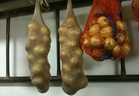 Никто сегодня не вспомнит ту первую смекалистую советскую хозяйку, которая догадалась хранить лук в старых чулках. Этот способ хранения прошел проверку временем, поскольку прост и эффективен. Если узел завязывать после каждой луковицы, то в такой «колбасе», лук хранится до восьми месяцев.