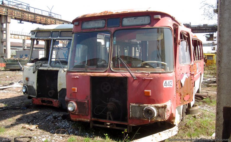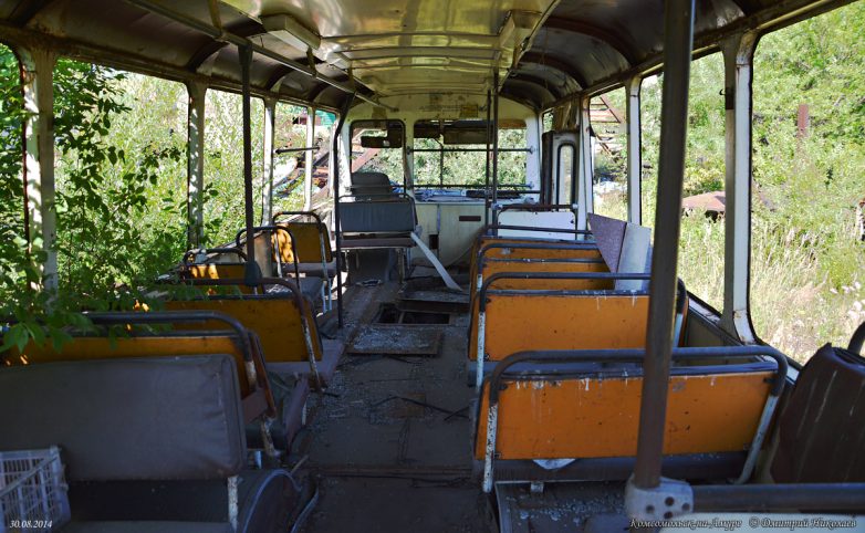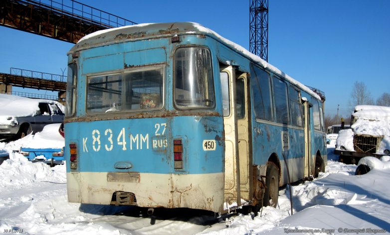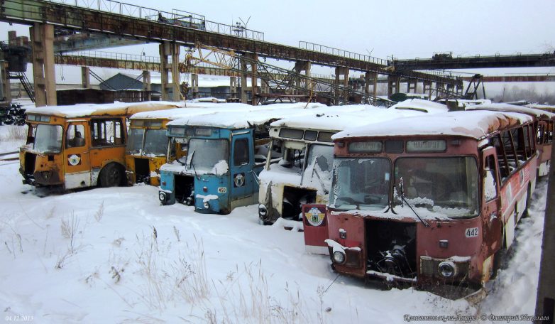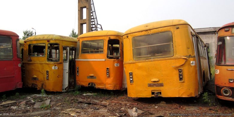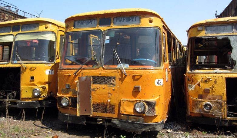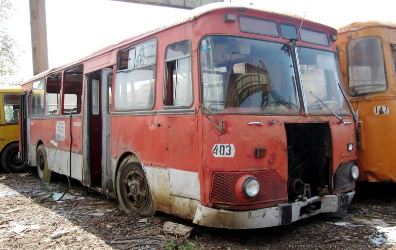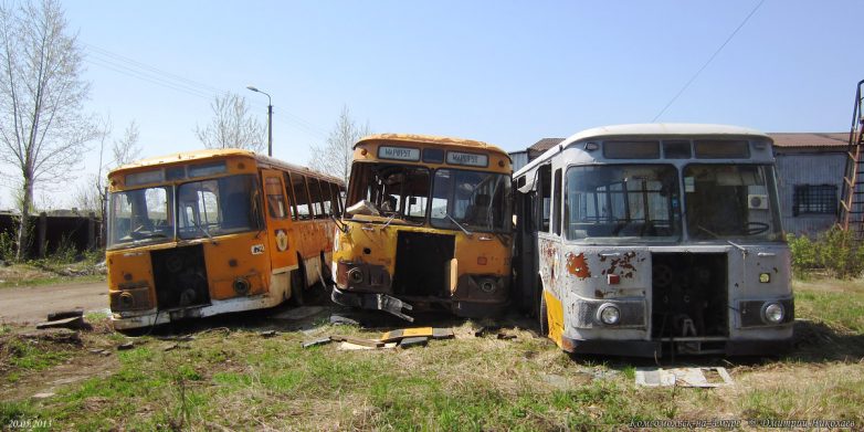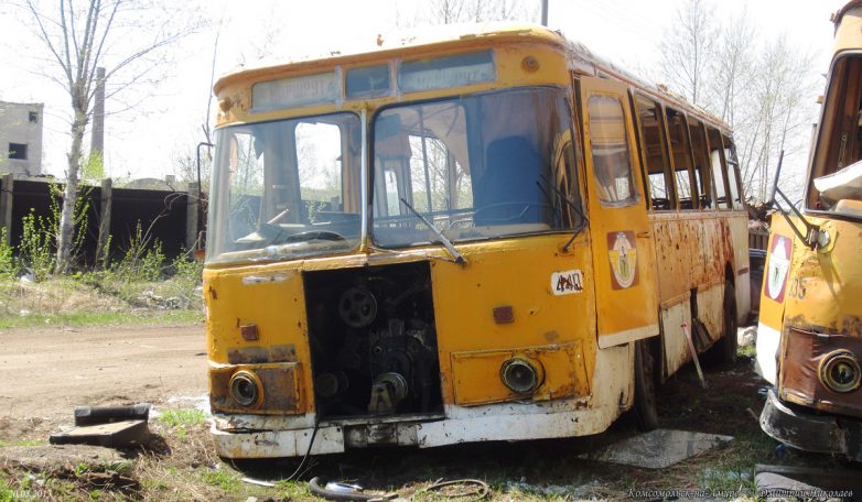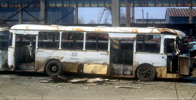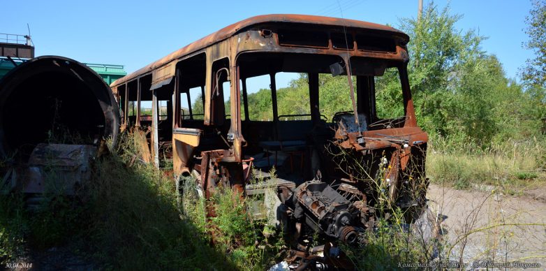 Всего успело прибыть свыше 500 новых автобусов, последние — в 1996 г. После этого поступали только «корейцы» и «пазики», но их было немного и большая часть автобусов были б/у поэтому, транспортники были вынуждены в течение 15 лет капиталить старые Лиазы, продлевая их срок работы до 20-25 лет при положенном сроке в 7 лет. В конце 2008 г. в город начинают массово поступать новые южнокорейские автобусы Daewoo BS106, а затем и российские ЛиАЗы-5256, а 677-е, проработав ещё 4 года, были единоразово отставлены от работы волевым решением в начале июня 2011 г. Связано это было с бедственным финансовым положением комсомольского ПАТП-1 — старые автобусы не столько приносили прибыли, сколько убытков, сказывался их возраст и увеличивающиеся с каждым годом расходы на ремонт и обслуживание, тем более что к этому времени в город успело поступить уже достаточно большое количество новых автобусов. В итоге несколько десятков старых Лиазов отправилось остывать сначала в гараж, а через некоторое время их потихоньку, несколькими партиями стали увозить на порезку.В этом посте предлагаю фотоотчёт с Комсомольской металлобазы, что по Северному шоссе, 56, где и нашла последнее пристанище наша последняя рабочая партия этой советской автолегенды. Узнал я об этом совершенно случайно, увидев один из списанных автобусов едущим на буксире по Северному шоссе. После этого я обнаружил их на металлобазе. Увозить сюда Лиазы начали примерно с 2010-го, а с 2011 г. они стали тут появляться массово. Жалкие, убитые, помятые, в заплатках, перекрашенные не один раз, некоторые уже без стёкол и фар, в большом количестве они производили весьма гнетущее впечатление. Каждый раз после посещения этого места у меня оставалось чувство грусти и потери. Ещё бы — ведь я много лет ездил ребёнком в этих гремящих воняющих бензином, но таких родных железных чемоданах, мы все ждали, когда их заменят новыми автобусами, а вот теперь они ушли тихо и незаметно, не оставшись даже на постаменте возле родного ПАТП, где служили добрых 40 лет. Вероятно, руководству нашего автобусного парка не до того.На сегодня от нескольких десятков старых Лиазов, работавших в Комсомольске в последние годы, здесь осталось только несколько ржавых остовов, лишь отдалённо напоминающих один из символов моего детства. Служебных тоже не осталось, изредка только «вымпеловские» наведываются из Амурска.