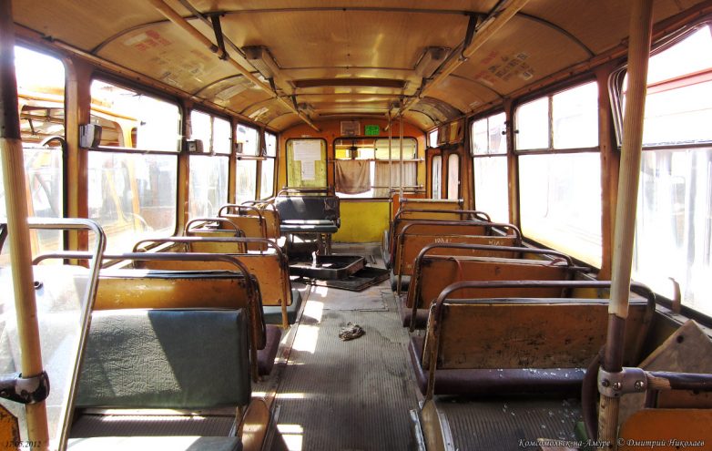 От автора:«Автобусы „ЛиАЗ-677“ проработали на маршрутах Комсомольска-на-Амуре ровно 40 лет. Первые экземпляры поступили в город в апреле 1971 г. и поступали ежегодно ещё в течение 25 лет.»