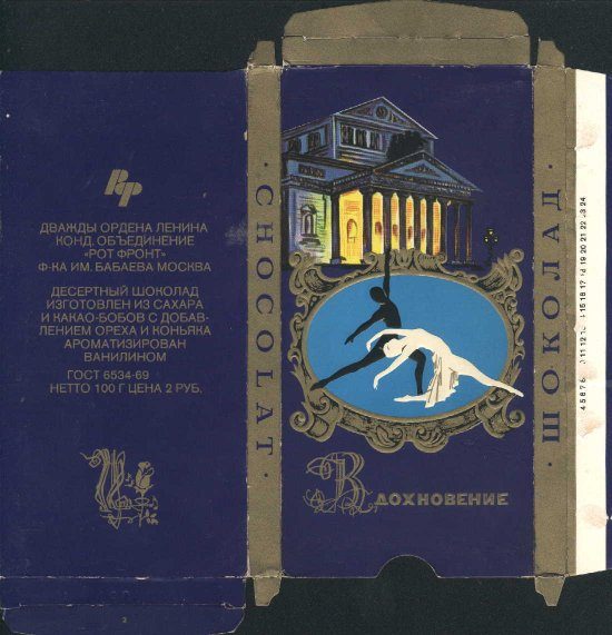 Вдохновлённый Косыгин привёз французский шоколад с собой и дал указания Государственной кондитерской фабрике №2 немедленно начать собственное производство. В 1967 году шоколад под названием «Вдохновение» появился на прилавках. Для оформления упаковки была выбрана тема балета, который всегда был визитной карточкой нашей страны.