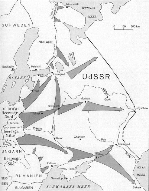 (По плану «Барбаросса» наступление немцев должно было закончиться примерно по линии Архангельск-Астрахань)
