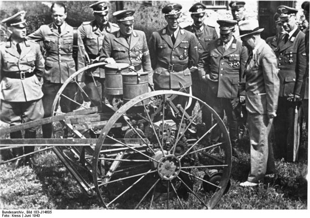 Розенберг осматривает сельхозинвентарь, предназначенный для Украины
