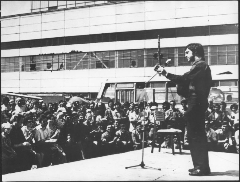 Очень демократический концерт на КАМАЗе. Как раз в то время вышла пластинка с песней «На братских могилах не ставят крестов». Удивительно было то, что все его песни без пластинок народ узнавал за два дня и через три начинал петь на улицах.