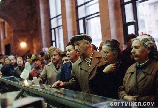 Потолок приходится белить зубным порошком, краску “приносят с работы”. Терпят хамство продавцов. Бегают за автобусом с рулонами туалетной бумаги на шее. Стоят за колбасой. Всё как всегда.