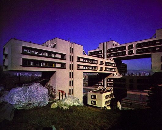 Взять хотя бы невероятное здание Министерства автомобильных дорог Грузии, построенное в середине семидесятых – смелый проект в виде причудливого «штабеля» прямоугольных блоков с симметричными рядами окон.