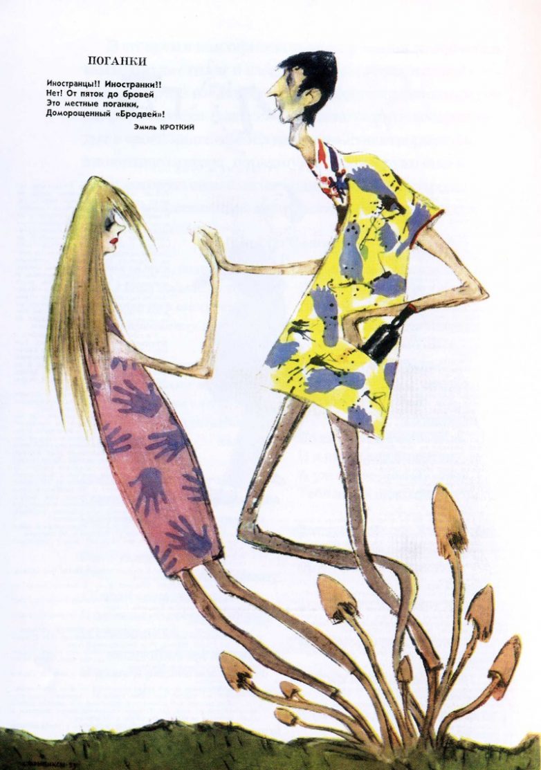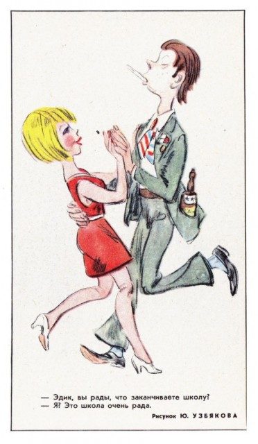 Общественное мнение видело в стилягах только тунеядцев, прохиндеев, подражателей Западу и «моральных уродов», что ярко и наглядно демонстрируют иллюстрации из «Крокодила».