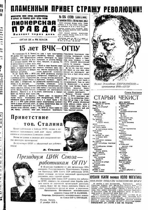Вожатые на сборах, учителя, приходящие в школы пограничники и милиционеры, пионерские издания предупреждают детей о новом враге «Беснуются фашисты, хотят напасть на нас, погасить светоч человеческой культуры. Засылают капиталисты и фашисты в наш тыл шпионов и диверсантов, но славная советская разведка, руководимая большевистской партией, рвет вражескую паутину, как бы хитро ни была сплетена она.
