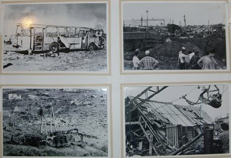 Место сразу не узнал. Здание вокзала пострадало несильно, только крышу снесло. В округе в то время были только небольшие частные одноэтажные дома. В радиусе 100-150 метров их снесло под корень.