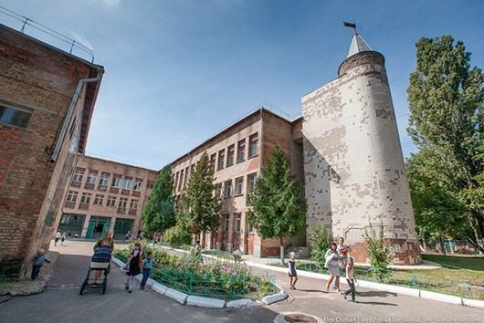 Вот на этом парапете в момент постройки была плитка, которая отвалилась уже в первый год. Для того, чтобы мы по парапетам не бегали, их смазывали солидолом. Это такая вонючая тягучая паста. Зачем это делать – мне абсолютно непонятно. Ведь мы все равно бегали, потом воняло на уроках, а родителям приходилось отстирывать одежду.