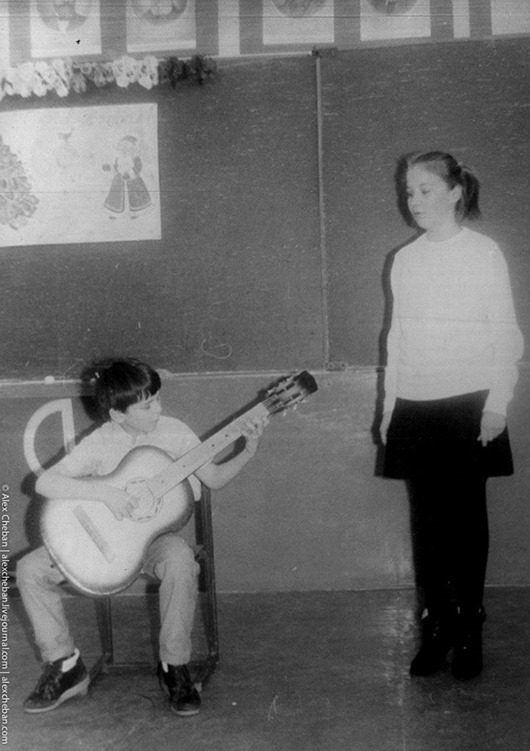 Мужчина на этой фотографии – это наш учитель музыки. В школе мы играли на сопилке, после небольшой тренировки я даже сейчас смогу сыграть «Неси Галя воду». Но в целом, не обладая большими музыкальными способностями, на уроках мне выпадала честь играть на треугольнике.