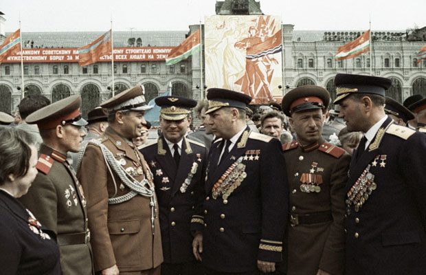 Александр Покрышкин (в центре) беседует с ветеранами ВОВ, 9 мая 1965 года.