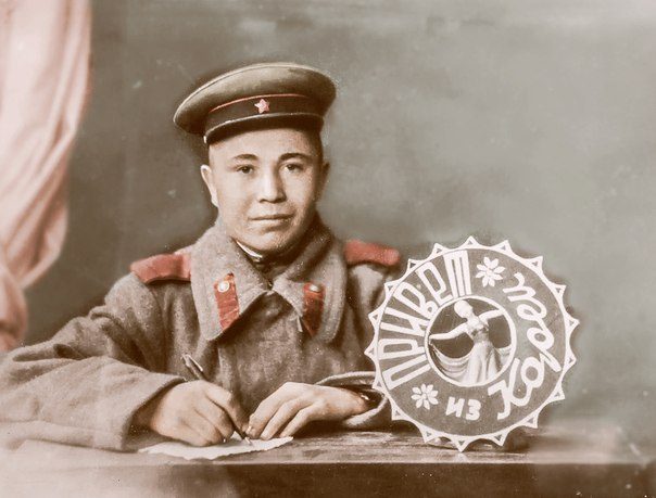 9 августа 1945 г.: СССР начал боевые действия против Японии. Рядовой Сафрагалин Фатих Хайретдинович позирует в ателье. Корея. Октябрь 1945.