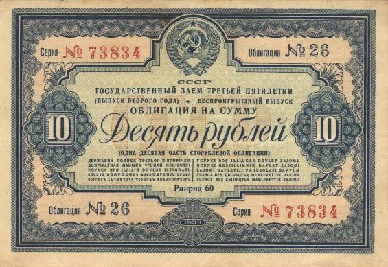 Из рассказов своих родственников я помню, что в обязанность рабочему ставилось подписаться на стоимость облигаций в один оклад в год. Лучше на полтора. Если вдруг нет — ....! Сделайте выводы сами. Не миновало и годы войны, когда каждый человек работал практически бесплатно. Один вопрос, А КУДА ВСЕ ДЕЛОСЬ-ТО?
