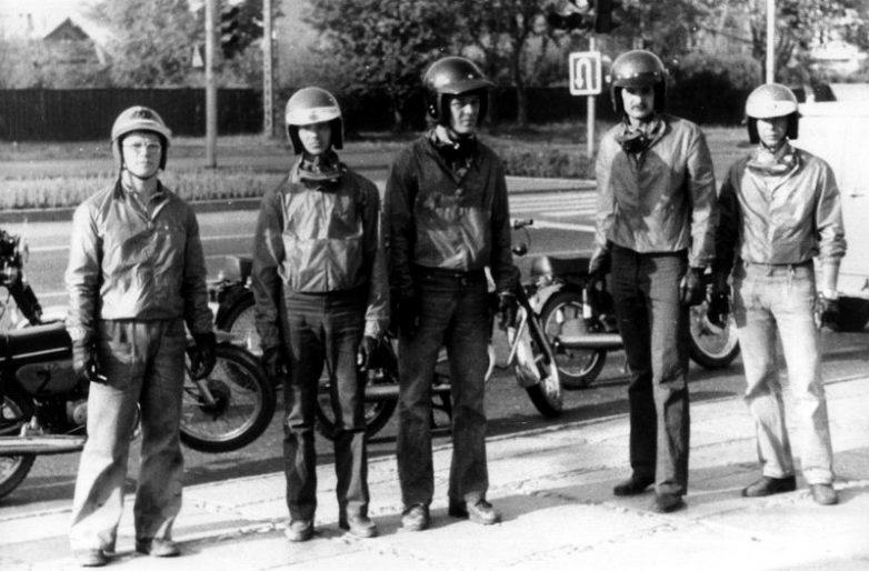 Подборка фоток, байкеры во времена перестройки. Какие то куклы крашеные.
