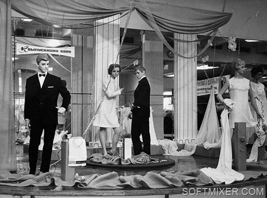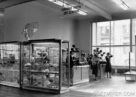 На втором и третьем этажах работали отделы школьной формы. Отмененная с приходом большевиков, в 1949 году она вернулась на прилавки.