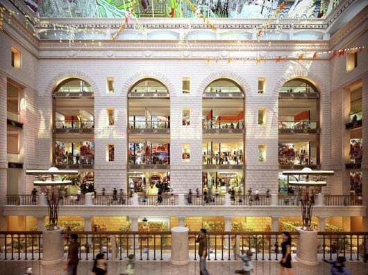 Совсем не случайно в тяжелейшие послевоенные годы в центре столицы был построен крупнейший в Европе универмаг детских товаров. Мерная поступь могучих арок на фасадах каменным эхом откликалась на шаг парадных батальонов по брусчатке Красной площади, но внутри, в интерьере центрального зала была заключена куда менее официозная и неожиданно гуманная художественная мысль: советский народ сражался с фашистами и победил ради того, чтобы рождались наши дети, чтобы у них было счастливое детство и много игрушек.